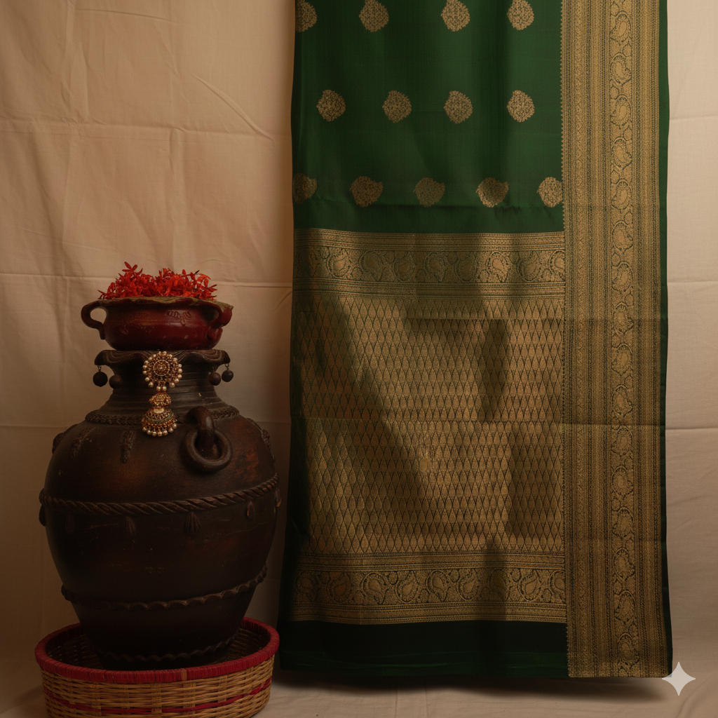 Bottle Green Kanchipuram silk (Pattu)