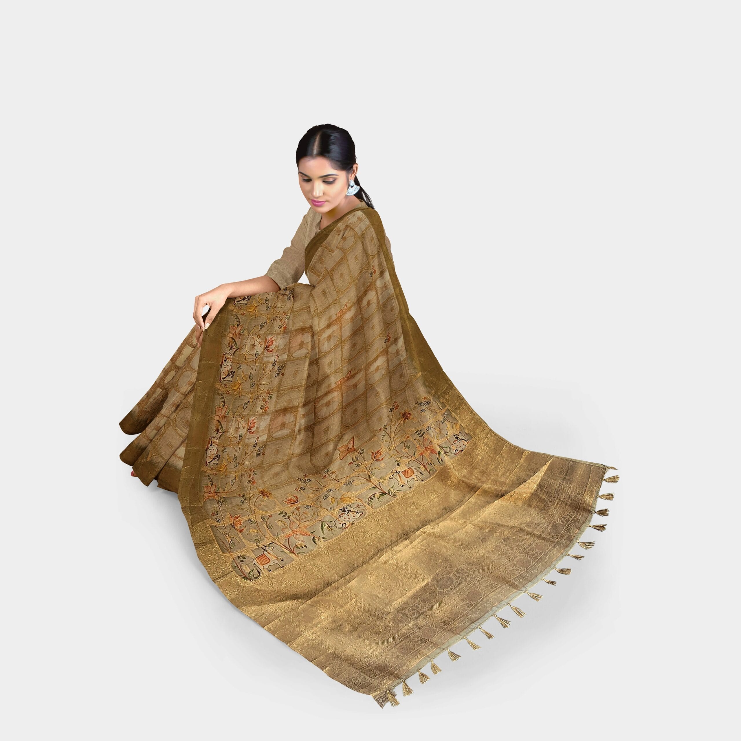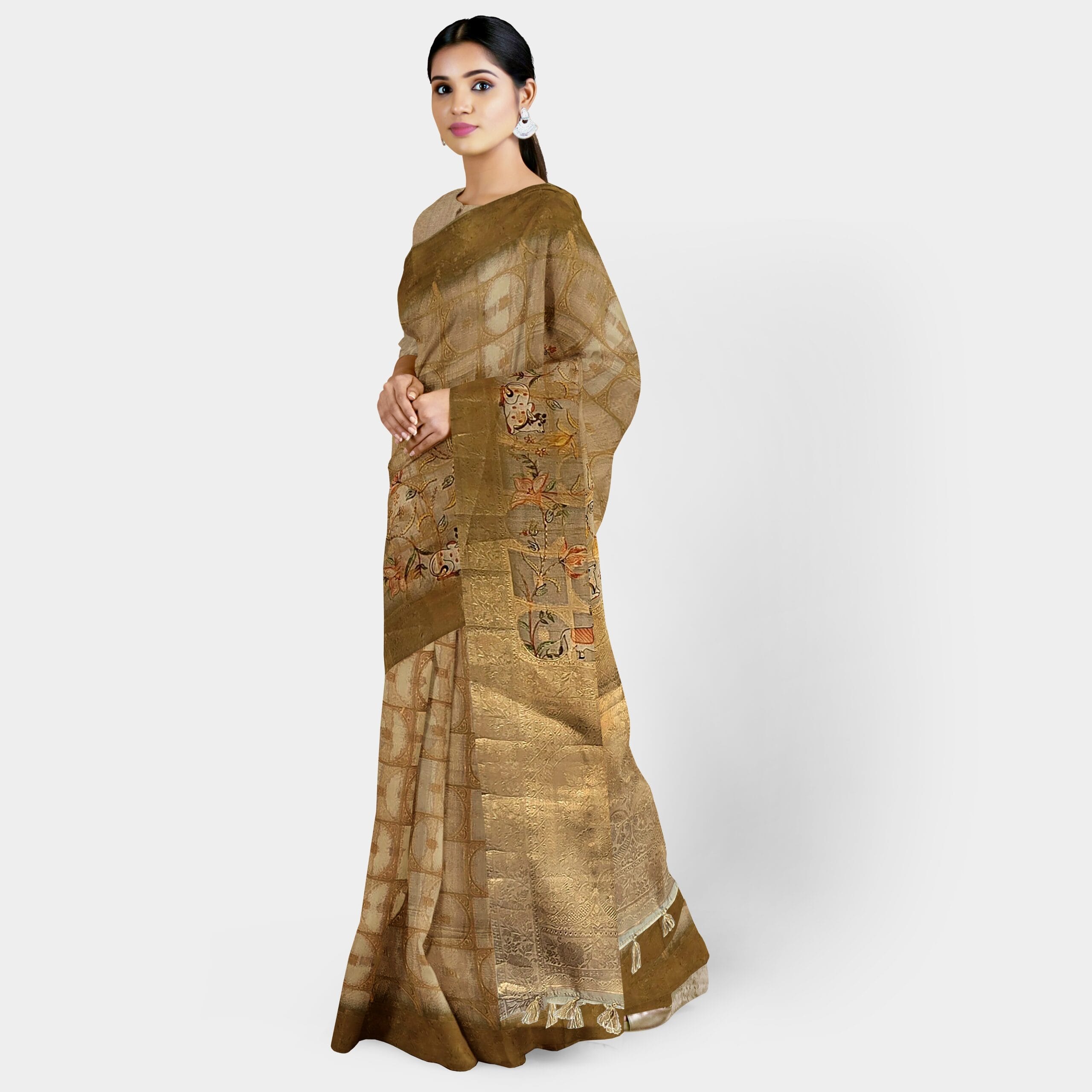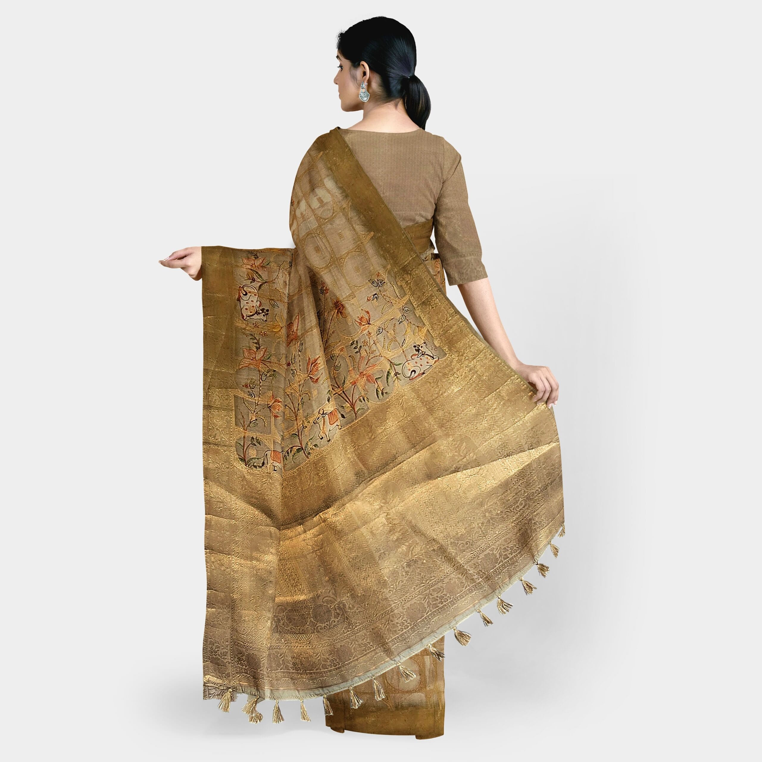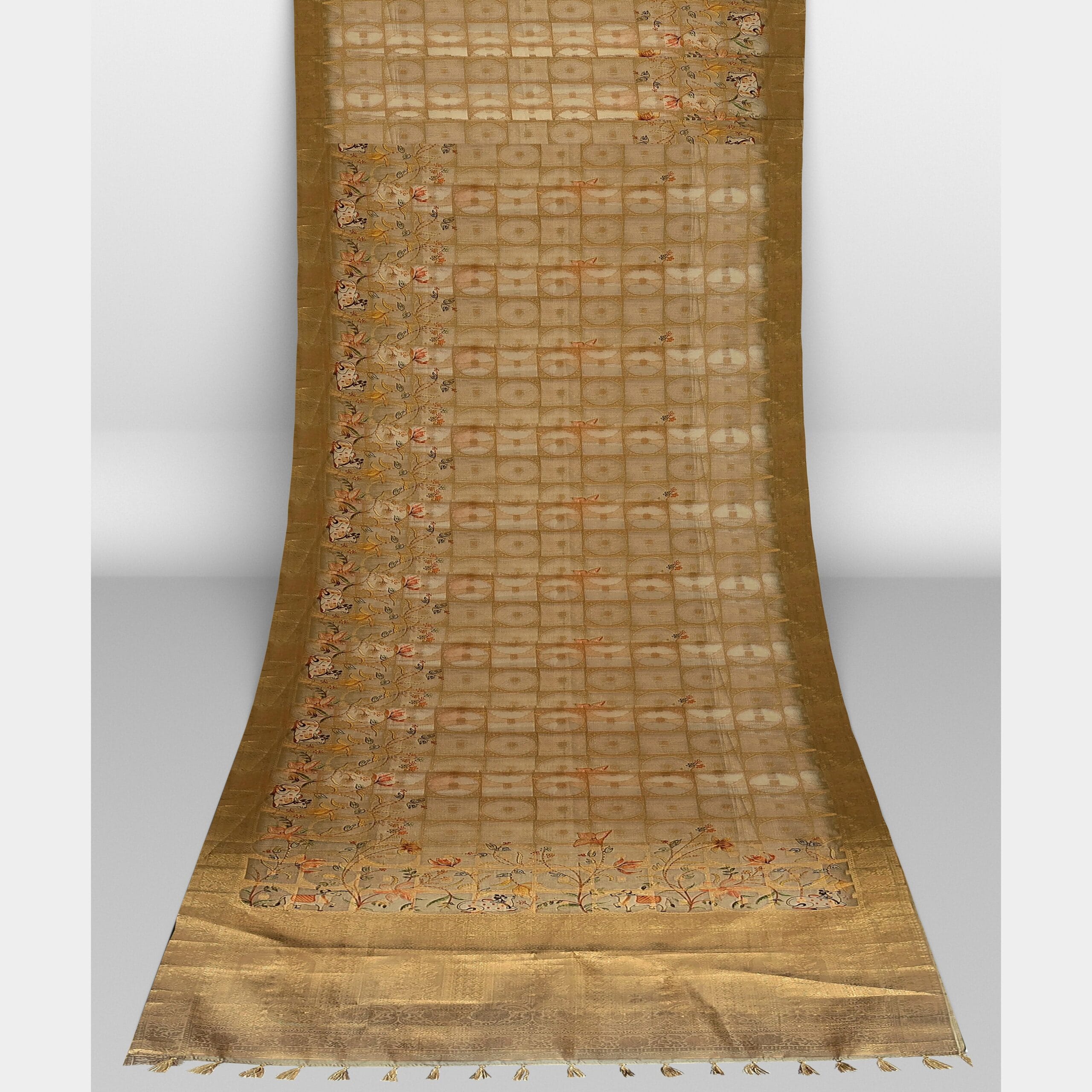 Exude grace and sophistication with our exquisite Organza saree in a soft cream-cow hue. This lightweight, sheer fabric drapes beautifully, creating an ethereal look that’s perfect for any special occasion. The subtle sheen of the organza material enhances the understated elegance of the cream tone, while its delicate texture provides a refined, airy feel. Ideal for weddings, parties, or formal gatherings, this saree effortlessly combines timeless tradition with modern charm.