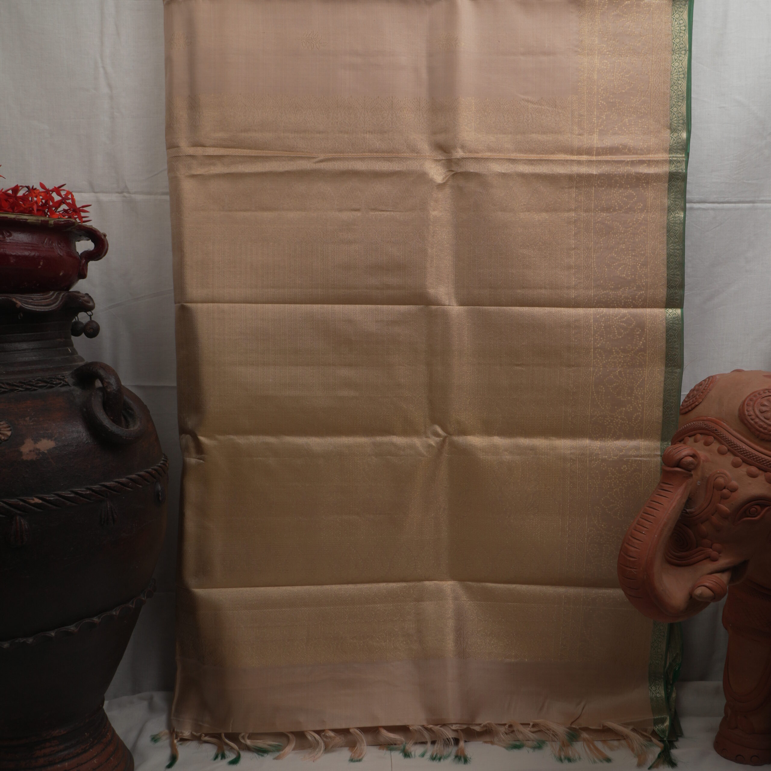 Kanchipuram Silk Saree – Beige with Green BorderKanchipuram Silk Saree – Beige with Green Border