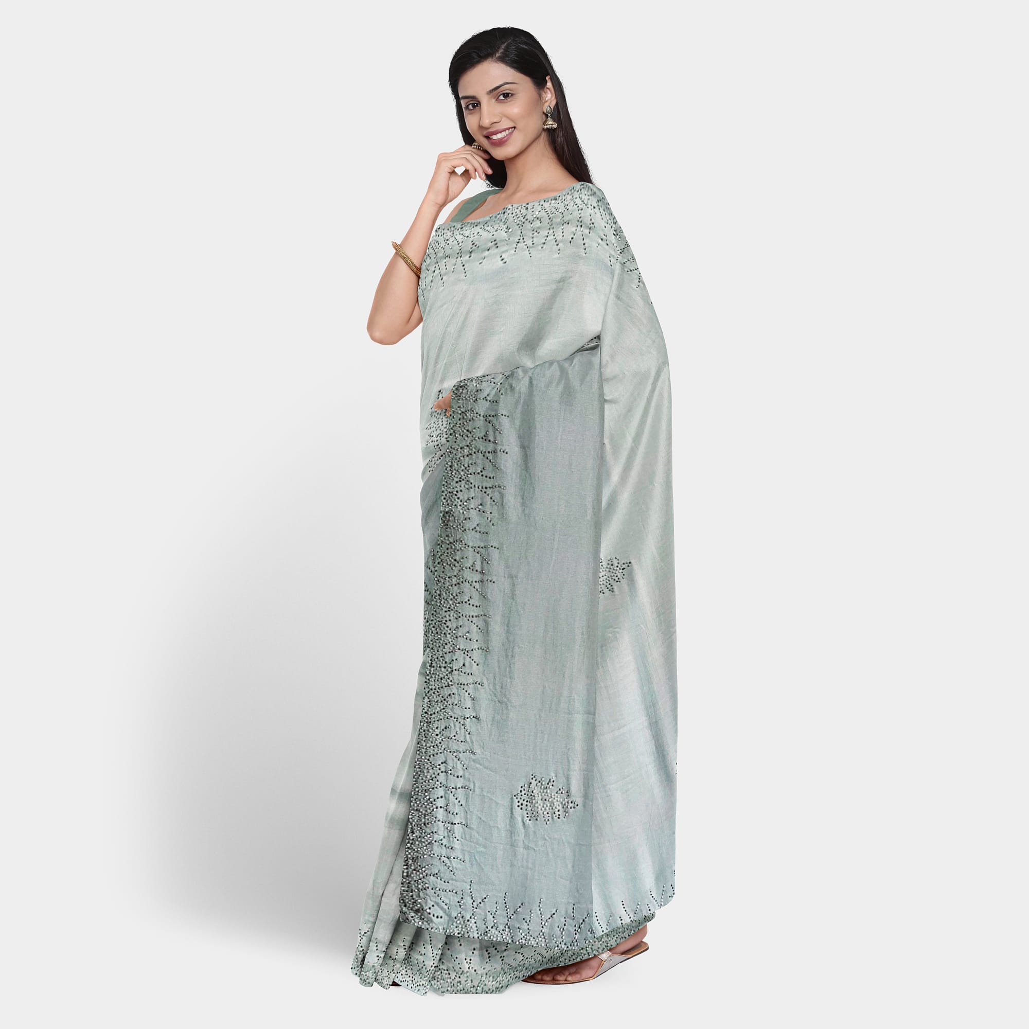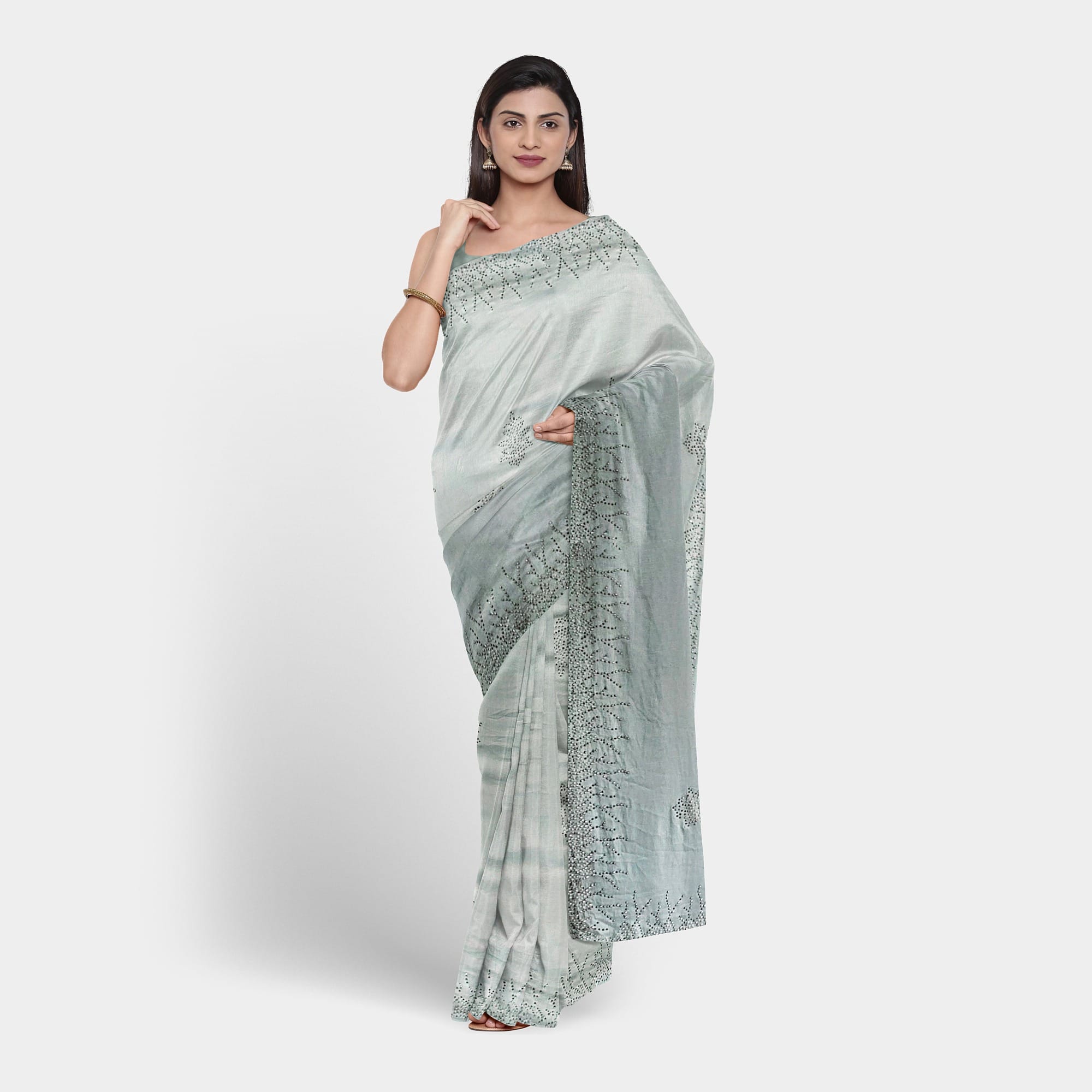 light weight bluish gray color Chiffon saree