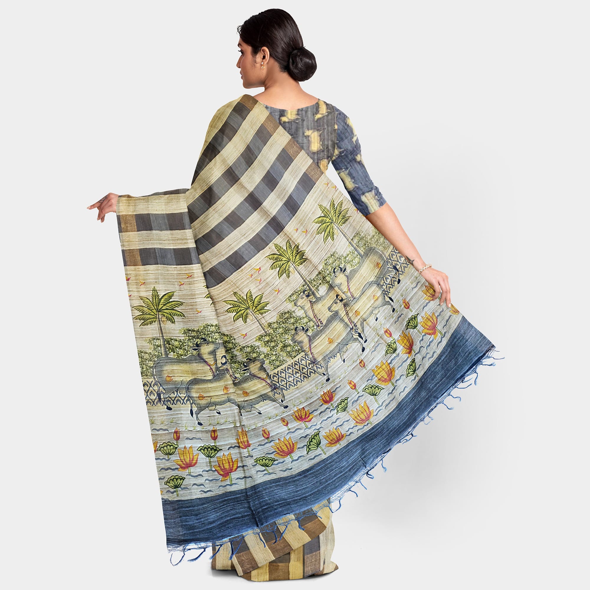 Rustic Elegance Embrace the warmth and simplicity of rural India with our stunning Raw Silk Cow, Cream Saree